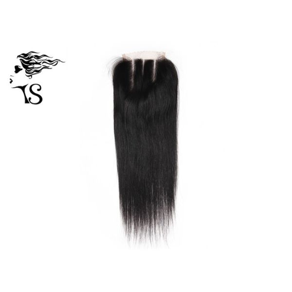 4x4 Swiss Lace Frontal Closure Three Part Silky Straight Natural Black Hair Women's Topper Pieces
